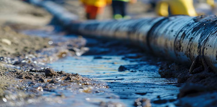کراچی: نیشنل آئل ریفائنری کی پائپ لائن پھٹنے کے بعد کراچی کی گلیوں میں تیل بہنے لگا، پولیس نے متعلقہ حکام کو آگاہ کردیا۔