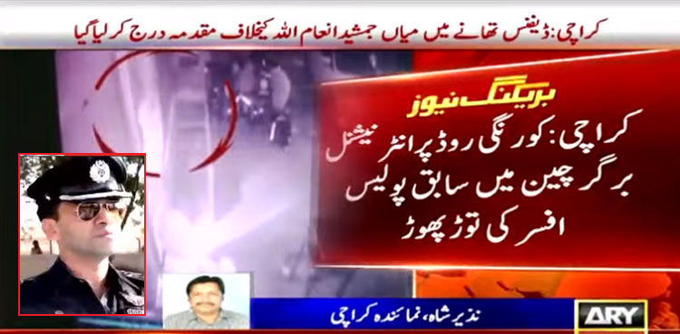 اے آر وائی نیوز کے مطابق کراچی کے علاقے کورنگی میں معروف برگر چین میں مبینہ طور پر توڑ پھوڑ کرنے والے سابق ایس ایس پی میاں جمشید انعام اللہ کے خلاف سرکاری مدعیت میں مقدمہ درج کرلیا گیا۔