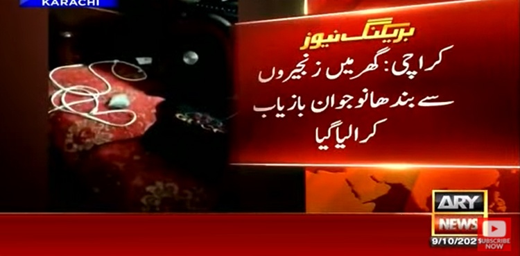 کراچی پولیس نےگھرمیں زنجیروں سےبندھے نوجوان کو شاہ لطیف ٹاؤن سے بازیاب کرایا۔ نوجوان کی شناخت حمزہ کے نام سے ہوئی ہے، جسے کسی اور نے نہیں بلکہ اپنے اہل خانہ نے زنجیروں سے باندھ کر روکا ہوا تھا۔