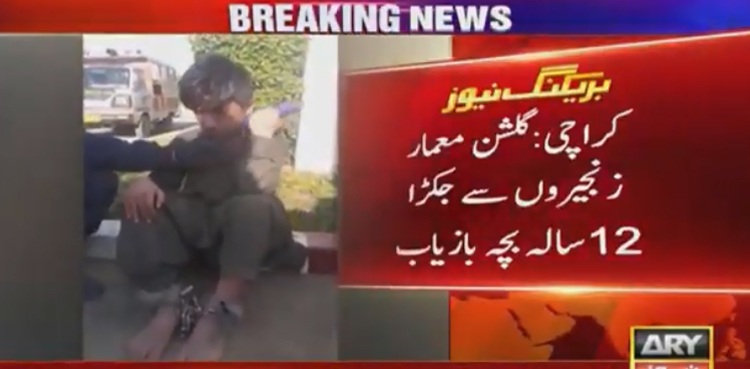 ایس ایس پی ملیر عرفان بہادر نے میڈیا کو بتایا تھا کہ آج گلشن معمار میں زنجیروں سےبندھا12 سال کا بچہ ملا ، بچےکے پیروں میں زنجیر باندھ کر تالےلگائےگئے تھے اور اس کے جسم پر زخموں کے بھی نشانات ہیں۔