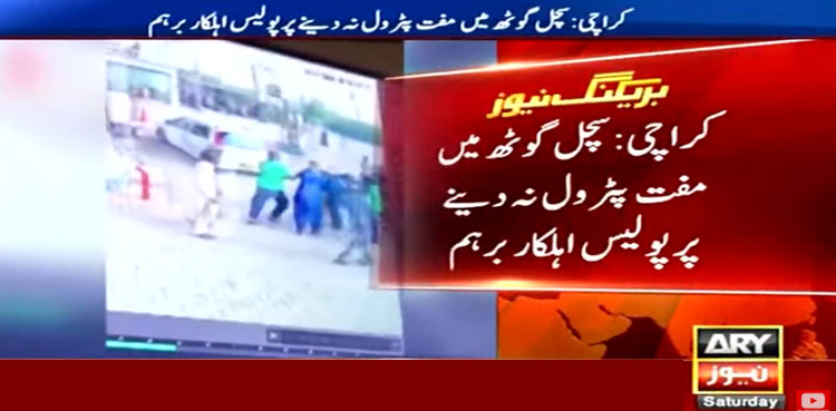 اے آر وائی نیوز کے مطابق شہر قائد کے علاقے سچل مدارس چوک کے قریب پولیس اہلکاروں نے گاڑی میں پیٹرول ڈلوایا جب ان سے پیسے مانگے گئے تو ملازمین کو تشدد کا نشانہ بنایا۔