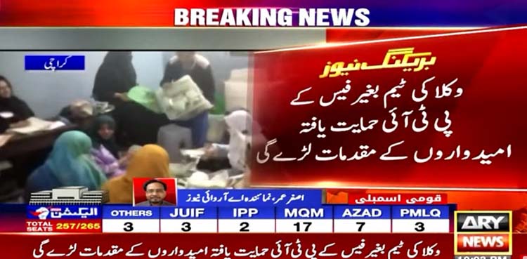 وکلا کی ٹیم بغیر فیس کے پی ٹی آئی حمایت یافتہ امیدواروں کے مقدمات لڑے گی۔