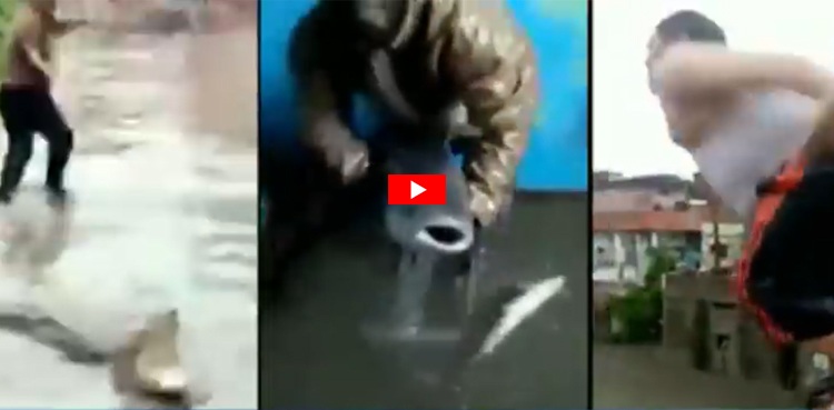 علاوہ ازیں سوشل میڈیا پر ایسی ویڈیو بھی دیکھی گئی جس میں بڑی بڑی مچھلیاں کسی شہری کے گھر میں داخل ہوکر تیرتی ہوئی نظر آئیں اور یہ مناظر بھی کراچی کے یوسف گوٹھ کے نہیں بلکہ بنگلادیش کے ہیں۔