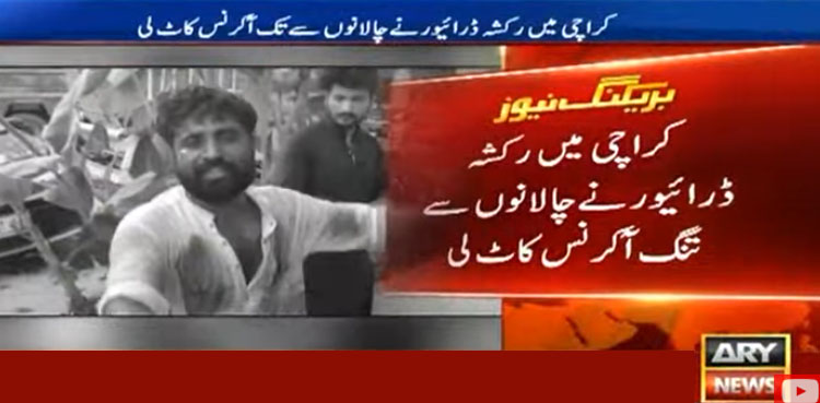 اے آر وائی نیوز کے مطابق کراچی کے علاقے اسٹیل ٹاؤن میں ٹریفک پولیس کے چالان سے تنگ آکر نس کانٹنے والے رکشہ ڈرائیور کو پولیس نے حراست میں لے لیا۔