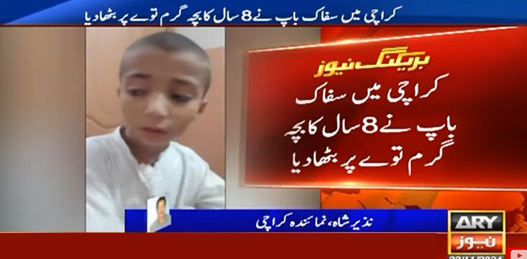 اے آر وائی نیوز کے مطابق افسوسناک واقعہ کراچی کے علاقے باوانی چوک سائٹ ایریا میں پیش آیا جہاں سفاک باپ نے بچے پر راڈ سے تشدد کیا اور اسے گرم توے پر بٹھا دیا۔