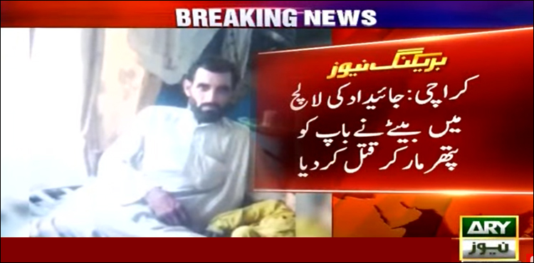 اے آر وائی نیوز کے مطابق کراچی کے علاقے سرجانی ٹاؤن زیرو پوائنٹ سے 3 جولائی کی رات بزرگ کی لاش برآمد ہوئی تھی، پولیس کا کہنا ہے کہ جائیداد کی لالچ میں بیٹے نے باپ کو پتھر مار کر قتل کیا۔