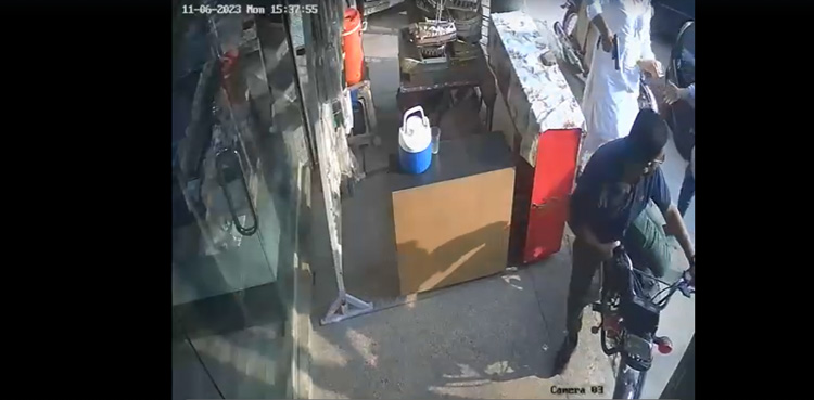 پاپوش نگر میں بھی باپ بیٹے کو لوٹ لیا گیا اس واقعے کی سی سی ٹی وی فوٹیج بھی منظرعام پر آگئی، جس میں 2 ڈاکوؤں کو بلاخوف پیدل چلتے ہوئے آتے دیکھا جاسکتا ہے۔