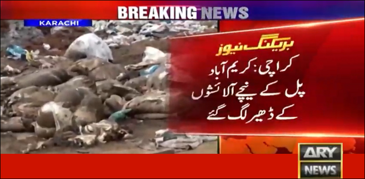 آلائشوں کے ڈھیر ڈسٹرکٹ سینٹرل، شرقی، ملیر، غربی، کورنگی، حسین آباد، لیاقت آباد دس نمبر اور کریم آباد میں لگے ہیں، عید کے تینوں دن محکمہ بلدیات، سالڈ ویسٹ آلائشیں اٹھانے میں ناکام رہے، دوسری طرف سندھ سالڈ ویسٹ کا دعویٰ ہے کہ 3 دن میں 42 ہزار ٹن آلائشیں اٹھا کر دفن کی گئی ہیں۔
