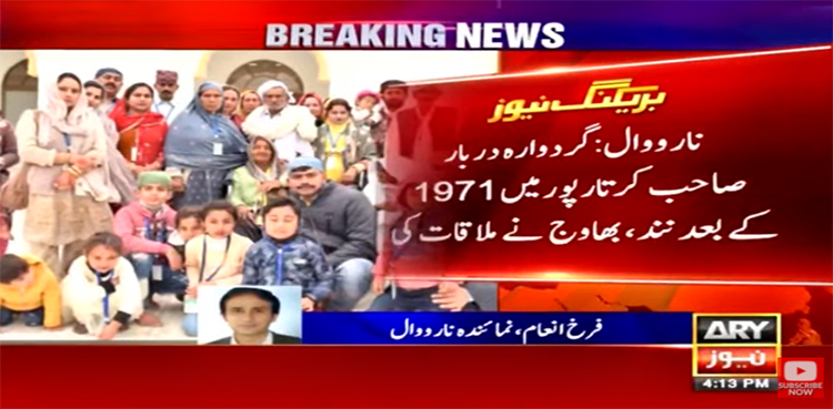 اے آر وائی نیوز کے مطابق کرتارپور راہداری برصغیر کی تقسیم کے وقت بچھڑنے والے خاندانوں کو ملانے کا ذریعہ بنتا جارہا ہے۔