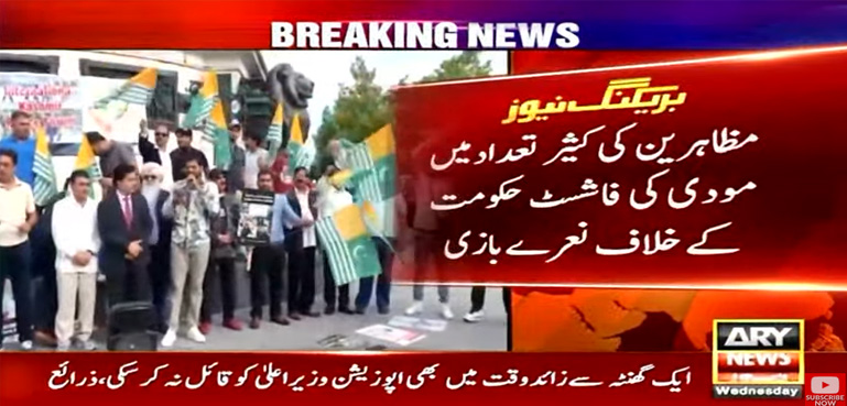 انٹرنیشنل کشمیر پیس فورم فرانس کے زیراہتمام کشمیری اورسکھ کمیونٹی کی جانب سے پیرس میں احتجاجی مظاہرہ کیا گیا، اس موقع پر مظاہرین کی کثیر تعداد موجود تھی جنہوں نے مودی کی فاشسٹ حکومت کے خلاف شدید نعرے بازی کی۔