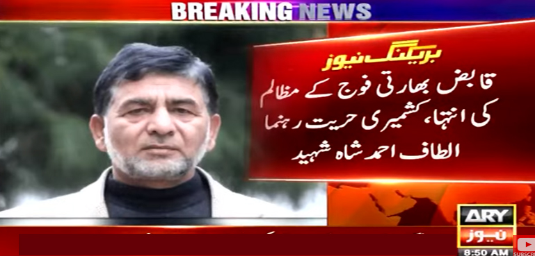 کشمیری حریت رہنما الطاف احمد شاہ بھارت کی بدنام زمانہ تہاڑ جیل میں 5 سال سے قید تھے اور ان کی ناساز طبیعت پر پاکستان نے بھارتی ناظم الامور کو دفترِ خارجہ طلب کیا تھا الطاف شاہ کی بیٹی نے والد کی شہادت کی تصدیق کردی ہے۔