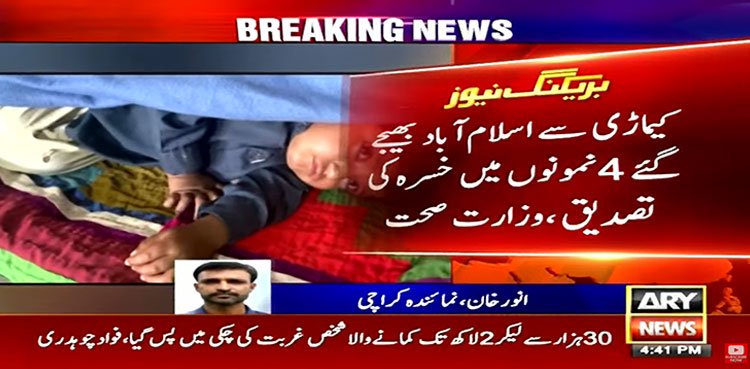 وزارت صحت حکام کے مطابق کیماڑی کے رہائشی تیرہ افراد کے خون کے نمونے این آئی ایچ بھجوائے گئے، جن میں سے چار نمونوں میں خسرہ کی تصدیق ہوئی جبکہ ایک فرد میں ڈینگی بخار میں مبتلا ہونے کی تصدیق ہوئی۔