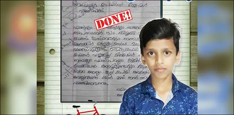 ریاست کیرالا کے میپایور پولیس اسٹیشن نے بچے کا خط ملنے کے بعد اُسے یقین دہانی کرائی کہ وہ مکینک کو پابند کریں گے اور جلد سائیکل لاکر دیں گے۔