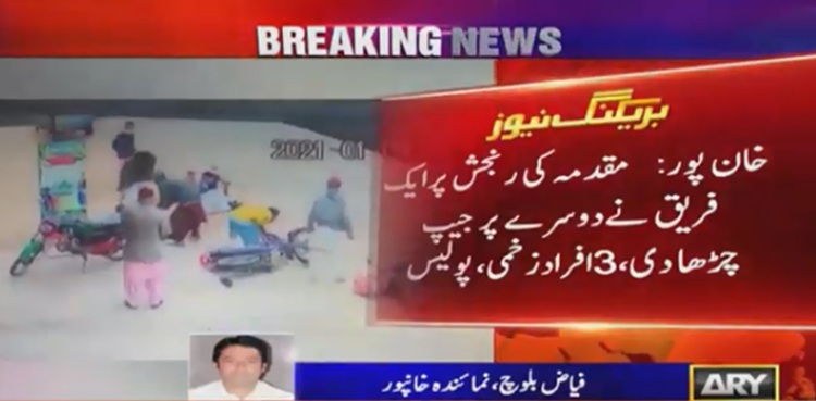 خان پور کی جانب سے جاری بیان کے مطابق واقعہ تھانہ سٹی کی حدود میں اس وقت پیش آیا، جب ایک فریق عدالت سماعت کے بعد موٹر سائیکل پر سوار ہوکر واپس جارہے تھے کہ دوسرے فریق نے ان پر جیپ چڑھادی۔