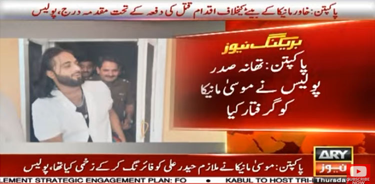 واقعہ خاور مانیکا کی رہائش گاہ پر پیش آیا، اطلاع کے بعد تھانہ صدر کی پولیس جائے وقوعہ پر پہنچی اور موسیٰ کو گرفتار کر لیا۔