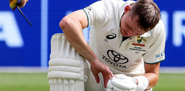 پرتھ ٹیسٹ کے دوران پاکستانی پیسر خرم شہزاد کی گیند لگنے سے آسٹریلوی بیٹر مارنس لبوشین زخمی ہوگئے، ان کی انگلی کا اسکین کروایا جائے گا۔