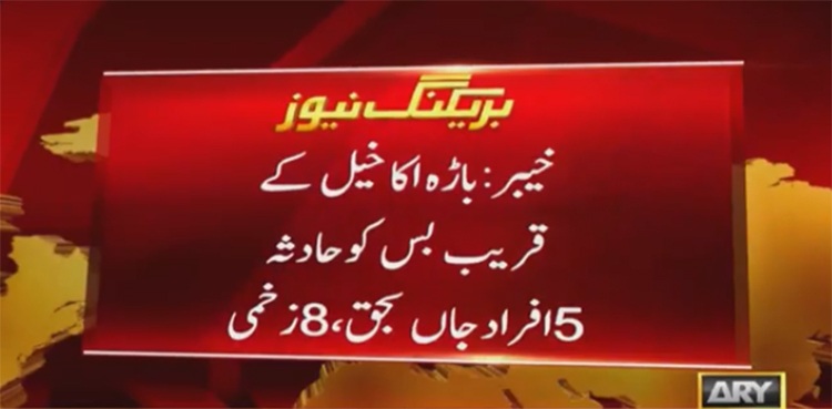 خیبر: صوبہ خیبر پختونخواہ میں مسافر کوچ کو پیش آنے والے حادثے کے نتیجے میں پانچ افراد جاں بحق جبکہ آٹھ زخمی ہوگئے ہیں۔