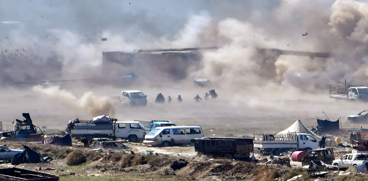 اخبار کی رپورٹ کے مطابق ایک امریکی جنگی طیارے نے مارچ 2019 میں باغوز قصبے کے قریب حملے پے در پے ڈرون حملے کیے۔