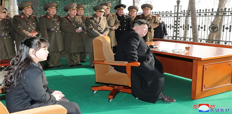 سرکاری میڈیا نے کم کی جوان بیٹی کو بھی صوفے پر بیٹھے ہوئے دکھایا جب وہ ان مناظر کو دیکھ رہی تھی جسے کامیابی کے طور پر بیان کیا گیا۔