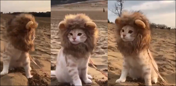 شیر جسے جنگل کا بادشاہ کا کہا جاتا ہے اُس کا روپ دھارنے کے لیے ایک شخص نے اپنے بھورے رنگ کی بلی کے بال اس انداز سے کٹوائے کہ بالکل چھوٹا شیر لگ رہی تھی۔