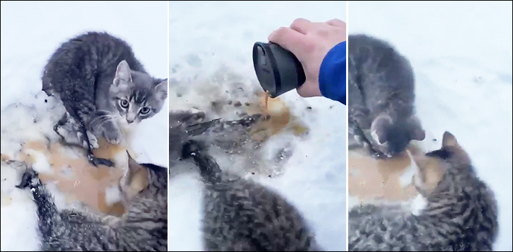 اوٹاوا : کینیڈین شہری نے برف میں پھنسی ننھی بلّیوں کو بچانے کےلیے ان کی دم پر گرما گرم کافی ڈال دی, بلّیوں کی مدد کرنے کے اس انوکھے طریقے کی ویڈیو سوشل میڈیا پر بھی وائرل ہوگئی۔