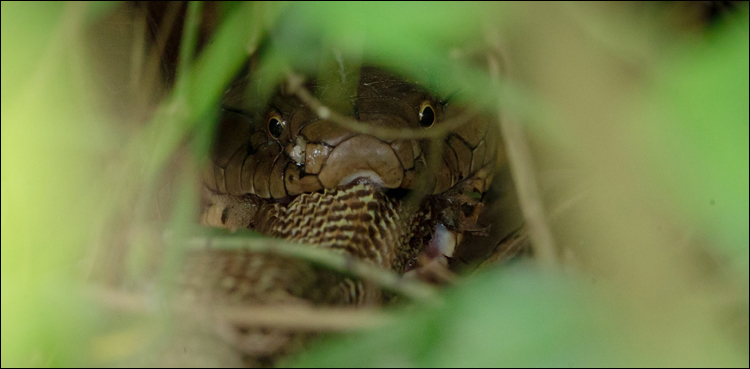 Ophiophagus hannah. A king cobra eating a spectacled cobra. They feed on lesser mortals. pic.twitter.com/LL8xzQoIww
