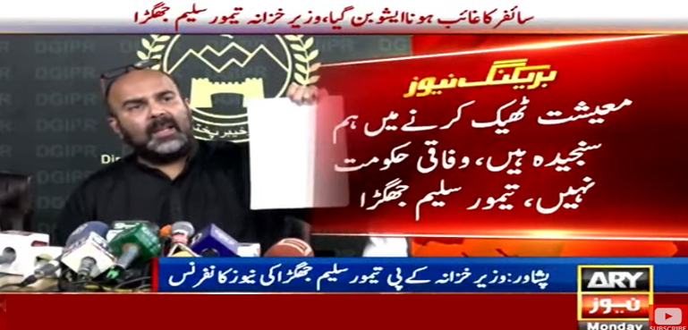 خیبر پختونخوا کے وزیر خزانہ تیمور سلیم جھگڑا نے کہا ہے کہ معیشت کو ٹھیک کرنے اور آئی ایم ایف کی شرائط کے حوالے سے ہم سنجیدہ ہیں مگر وفاقی حکومت نہیں ہے۔