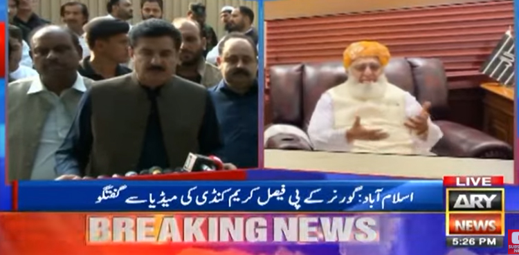 جمعیت علمأ اسلام کے سربراہ مولانا فضل الرحمان سے وفد کے ہمراہ ملاقات کے بعد میڈیا سے گفتگو میں گورنر نے کہا کہ تحریک انصاف اختلافات کا شکار ہے سیاست میں اتحاد بنتے اور ٹوٹتے رہتے ہیں اگر نمبرز پورے ہوں گے تو تحریک عدم اعتماد لائی جاسکتی ہے لیکن چاہتے ہیں خیبرپختونخوا اسمبلی میں اپوزیشن بھرپور کردار ادا کرے۔
