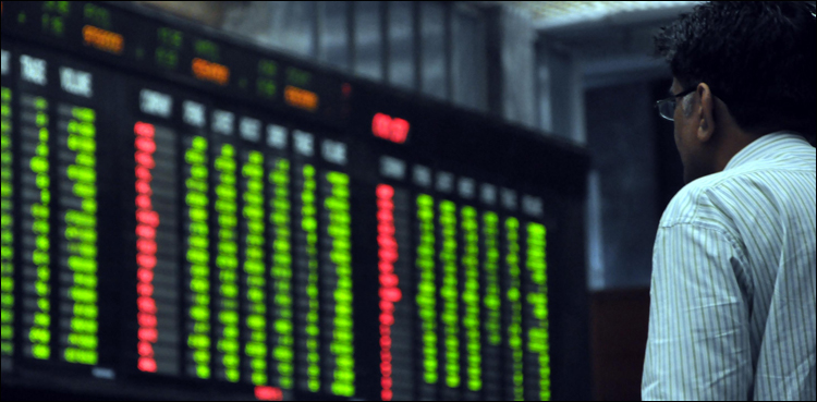 ٹریڈنگ کے دوران کےایس ای ہنڈریڈ انڈیکس سات سو سے زائد پوائنٹس کی کمی سے 33 ہزار 575 کی سطح پر آگیا تھا۔