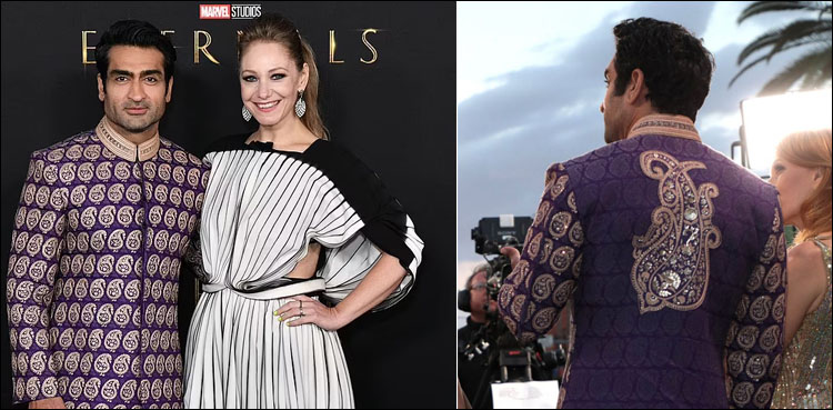 Kumail Nanjiani rocks wearing Pakistani designer 's sherwani at 'Eternals'  premiere - Oyeyeah