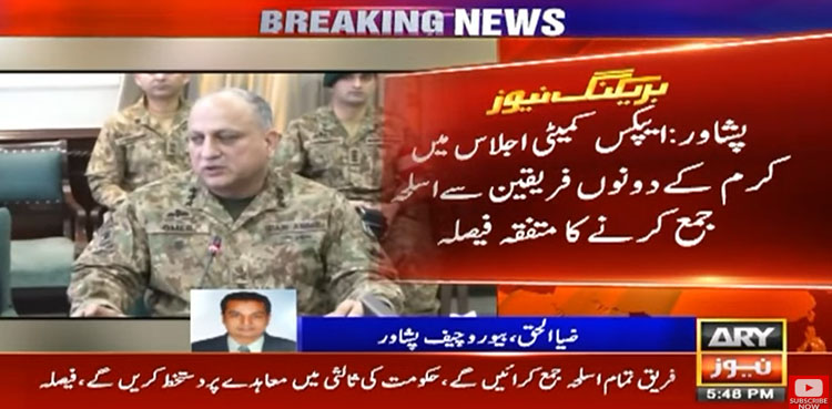 پشاور: ایپکس کمیٹی نے کُرم کے دونوں فریقین سے اسلحہ جمع کرنے کا متفقہ فیصلہ کیا ہے۔