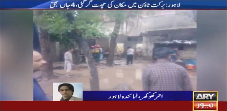 لاہور: پنجاب کے شہر لاہور میں مکان کی چھت گر گئی جس کے نتیجے میں 4 افراد جاں بحق ہوگئے۔
