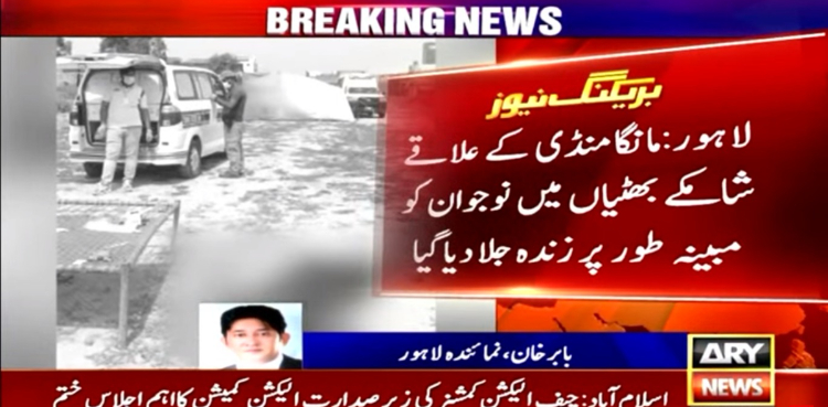 لاہور: مانگامنڈی کے علاقے شامکے بھٹیاں میں نوجوان کو مبینہ طور پر زندہ جلا دیا گیا۔