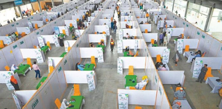 لاہور ایکسپو سینٹر میں کورونا ویکسین ختم ہونے پر شہری پھٹ پڑے ، دروازے توڑ کر اندر داخل