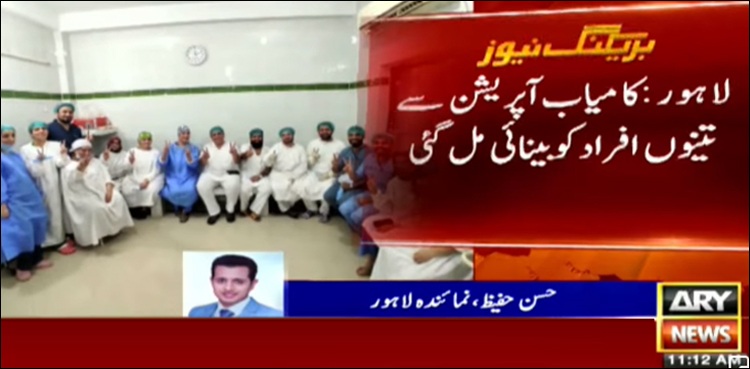 اے آر وائی نیوز کے مطابق لاہور کے کنگا رام اسپتال میں چودہ، 17 اور بیس سال کی عمر کے تین نابینا بچوں کی آنکھوں کا کارنیا آپریشن کامیابی کے ساتھ کیا گیا۔