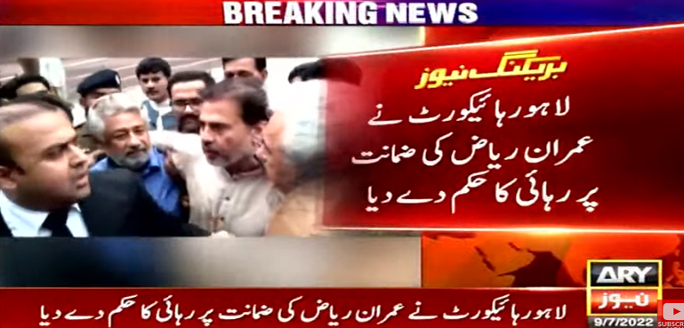 لاہور ہائیکورٹ نے سینیئر اینکر عمران ریاض کی ضمانت پر رہائی کا حکم دیتے ہوئے آئندہ ورکنگ ڈے پر انہیں مجسٹریٹ کی عدالت میں پیش ہونے کا حکم دیا ہے۔