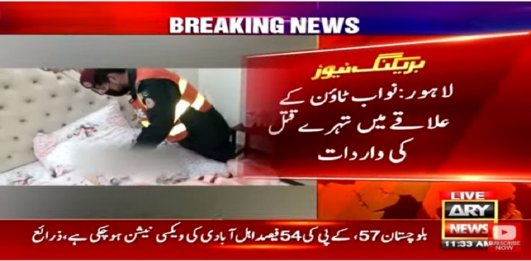 اےآر وائی نیوز کے مطابق لاہور کے علاقے نواب ٹاؤن میں تہرے قتل کی لرزہ خیز واردات ہوئی ہے، جہاں نامعلوم ملزمان نے دو خواتین سمیت تین افراد کو قتل کردیا ہے۔