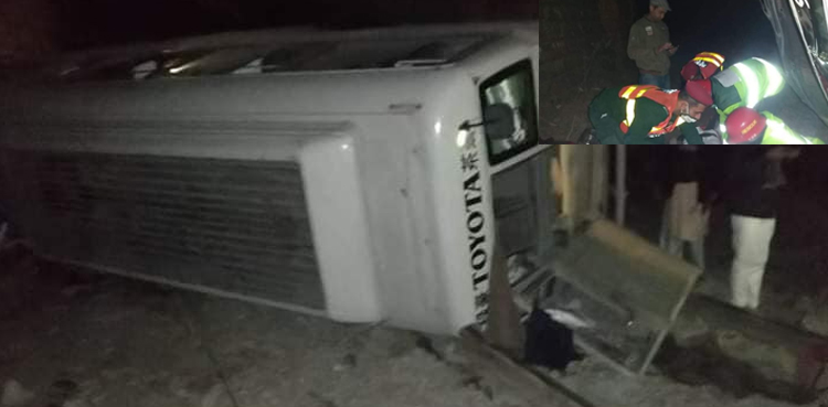 حادثے کی اطلاع ملنے کے بعد امدادی ٹیمیں جائے حادثے پر پہنچی اور لاشوں و زخمیوں کو نکال کر ڈسٹرکٹ ہیڈکوارٹرز اسپتال منتقل کیا،زخمیوں میں سے کئی کی حالت نازک ہے۔