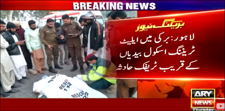 اے آر وائی نیوز کے مطابق لاہور کے علاقے برکی میں ایلیٹ ٹریننگ اسکول بیدیاں کے قریب تیز رفتار ٹریکٹر ٹرالی نے موٹر سائیکل سوار کو کچل ڈالا، حادثے میں 3 افراد جاں بحق ہوگئے۔