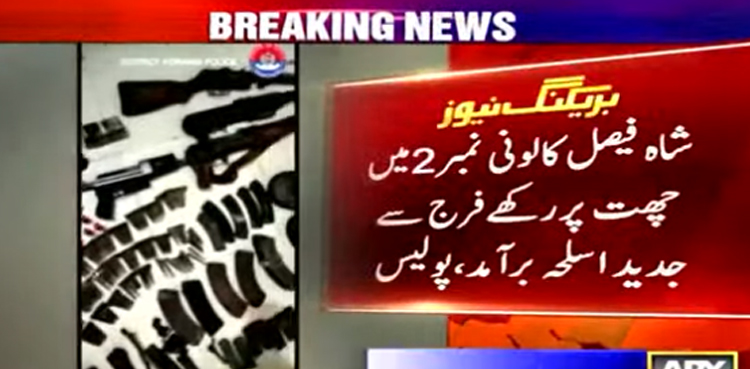 کراچی : پولیس نے شاہ فیصل میں مسجد کی چھت پر رکھے فرج سے جدید اسلحے کی بڑی کھیپ برآمد کرلی۔