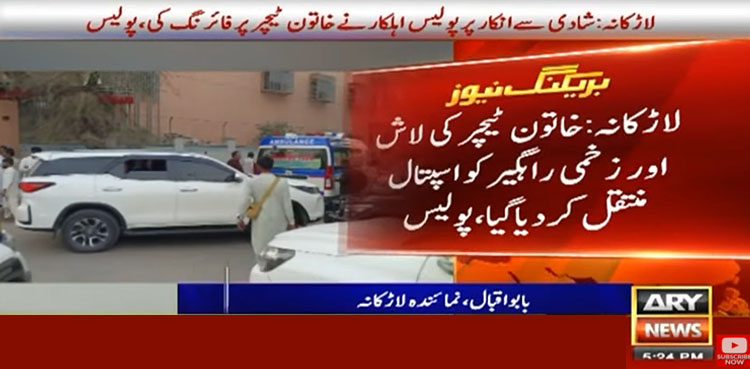 لاڑکانہ میں شادی سے انکار پر پولیس اہلکار نے خاتون ٹیچر کو فائرنگ کرکے قتل کردیا۔