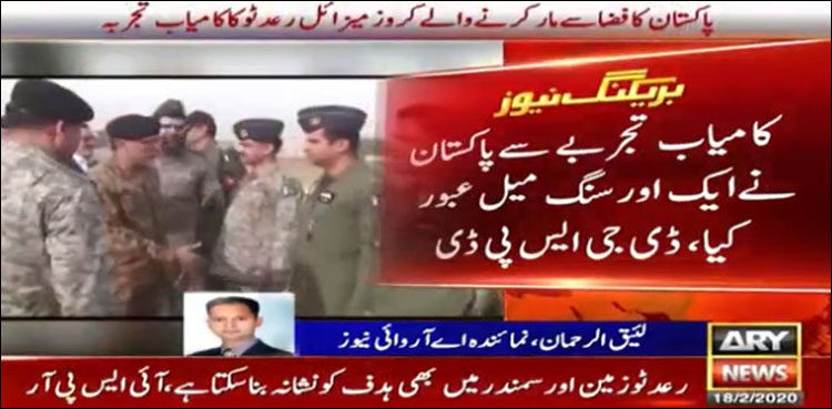 کامیاب تجربے پر صدر مملکت ڈاکٹر عارف علوی، وزیر اعظم عمران خان اور عسکری قیادت کی جانب سے مبارکباد دی گئی۔