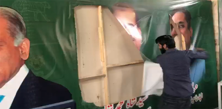 مسلم لیگ ہاؤس کے باہر مشتعل کارکنان نے قیادت کے پوسٹر پھاڑ دیئے اور دروازے توڑ کر قبضہ ‏کر لیا۔ ‏