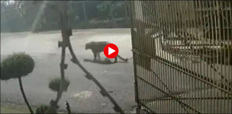 ایسی ہی ایک ویڈیو بھارت کے شہر غازی آباد سے سامنے آئی ہے جس میں دیکھا جاسکتا ہے کہ تیندوا سڑک پر ٹہل رہا ہے جس سے علاقہ مکینوں میں خوف و ہراس پھیل گیا۔