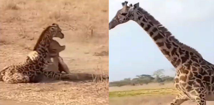 کچھ اسی طرح کی ایک زبردست ویڈیو سوشل میڈیا پر وائرل ہورہی ہے کہ جس میں مادہ زرافہ نے شیر کے خوفناک جبڑوں میں سے اپنے بچے کو آزادی دلائی۔
