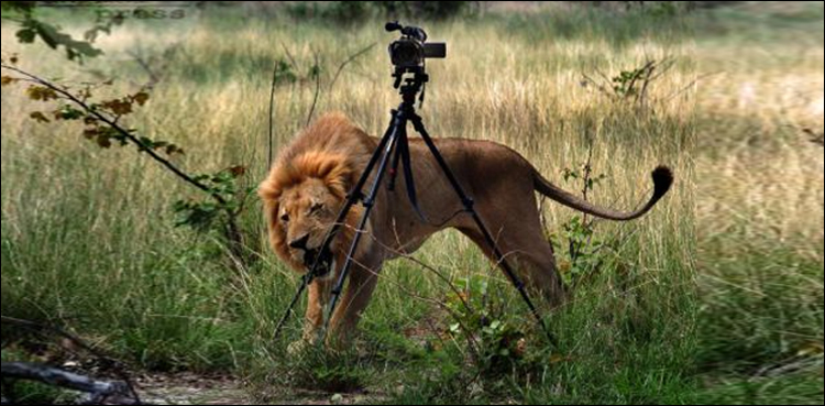 ایک شیر نے اچک کر کیمرے کو اپنے دانتوں میں دبا لیا اور اسے لے کر وہاں سے چل دیا۔ اس دوران کیمرا ریکارڈنگ کرتا رہا اور کئی منفرد مناظر عکس بند کرلیے۔