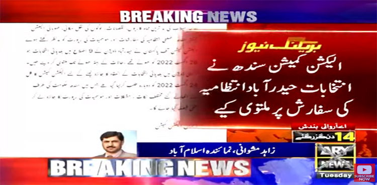 الیکشن کمیشن سے جاری بیان کے مطابق سیلاب کی بدترین تباہ کاریوں، نقصانات اور لوگوں کی نقل مکانی، صوبائی الیکشن کمشنر، ضلعی انتظامیہ سفارشات اور موسمیات کی رپورٹ کو مدنظر رکھتے ہوئے حیدرآباد ڈویژن کے 9 اضلاع میں 28 اگست کو شیڈول بلدیاتی الیکشن متلوی کر دیے گئے ہیں۔