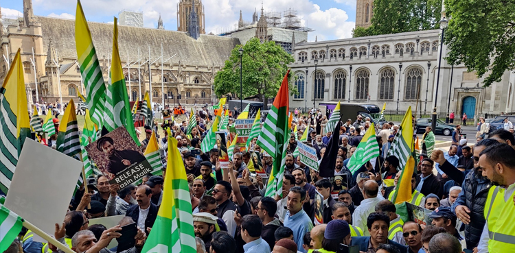 لندن میں مقیم کشمیریوں نے کشمیری حریت رہنما یاسین ملک کی رہائی کے لیے برطانوی پارلیمنٹ کے سامنے احتجاجی مظاہرہ کیا ہے۔