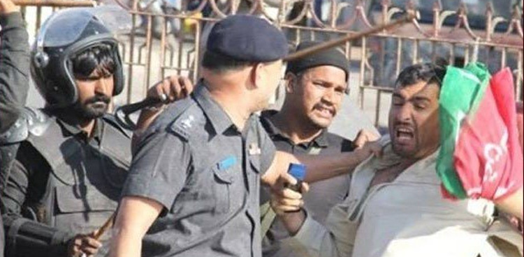 سندھ پولیس نے صورتحال کو کنٹرول کرنے کیلئے پی ٹی آئی رہنماؤں کیخلاف کریک ڈاؤن شروع کردیا، پولیس نے مقامی صدر اویس گل سمیت20کارکنان کو گرفتار کرکے لاک اپ کردیا۔