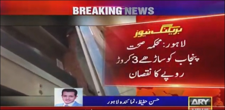اے آر وائی نیوز کے مطابق محکمہ صحت پنجاب کو حکام کی مبینہ غفلت کے باعث ساڑھے 3 کروڑ روپے کا نقصان اٹھانا پڑ گیا، سروسز اسپتال کے ریڈیالوجی ٹاور کے افتتاح سے قبل ہی ساڑھے 3 کروڑ روپے کی فلورو اسکوپی مشین زنگ آلود ہو گئی ہے۔